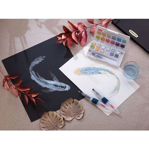 This Derwent Inktense Paint Set is ideal for travel and use outdoors with everything needed to ‘paint on the go’, including 12 highly lightfast Inktense paint pans, a mini waterbrush, a sponge and five mixing palettes. Inktense is suitable for use on paper, fabric and other surfaces for a wide range of art and craft projects.