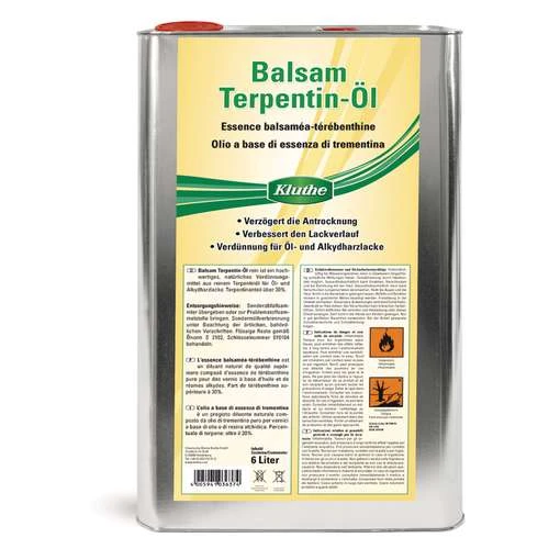 Kluthe pure balsam turpentine, ideal as a diluting agent for oil paints, painting mediums and varnishes.