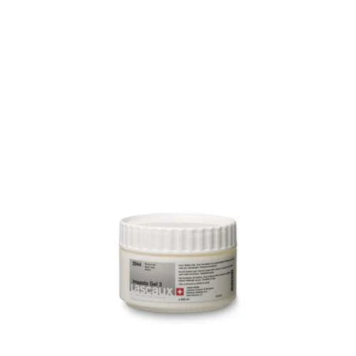 Once dry Lascaux Impasto Gel dries into a clear film with great strength and flexibility and maximum light resistance. It is available in gloss (Impasto Gel 1), matt (Impasto Gel 2), or satin (Impasto Gel 3) in a variety of sizes.