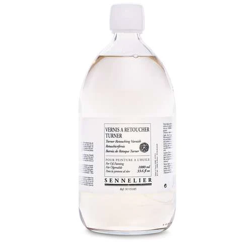 This Dammar gum based light varnish is quick drying. It provides a good grip between layers of paint and can also be used as a temporary painting varnish. Sennelier Turner Retouching Varnish can be thinned with petroleum spirits or turpentine if required. It is sold in 1 litre bottles.